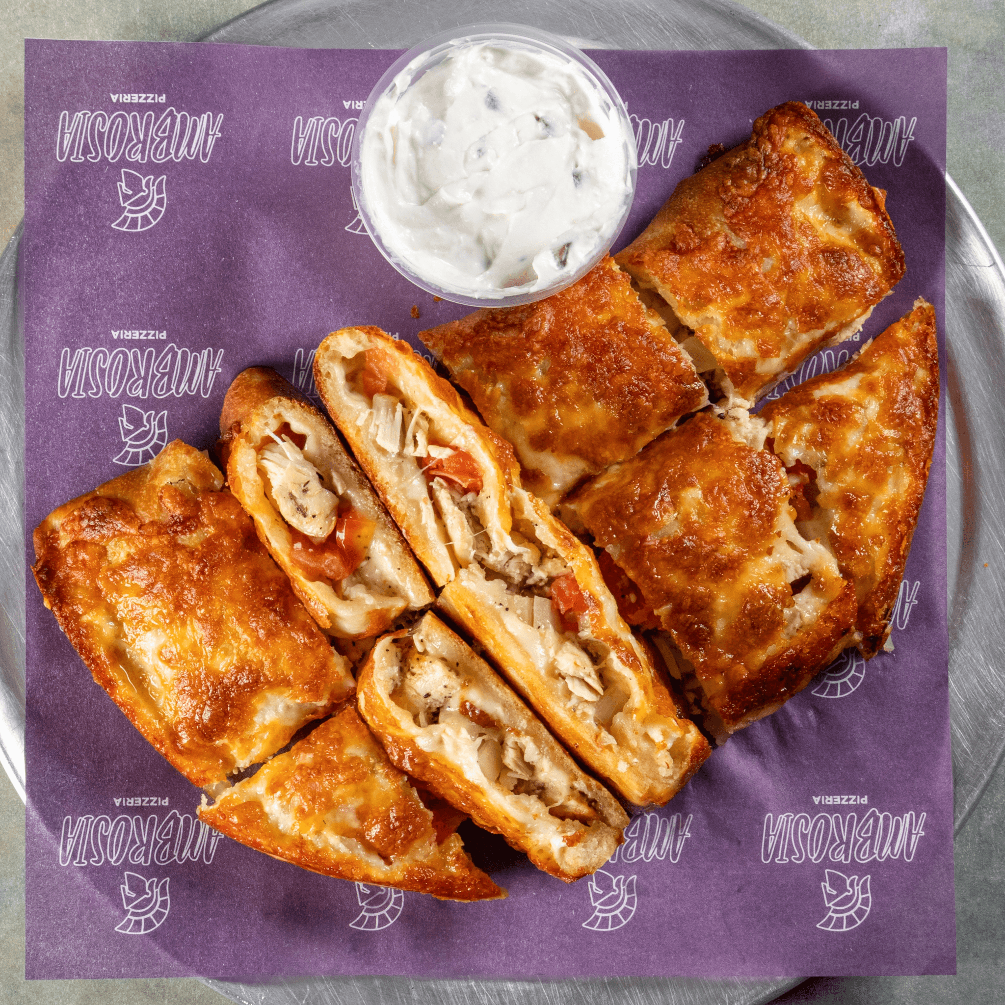 Crispy house made chicken cutlet dipped in rich vodka sauce, layered with melted provolone, cup & char pepperoni, and finished with a drizzle of Mike’s Hot Honey - served on a seeded braided roll brushed with garlic butter.