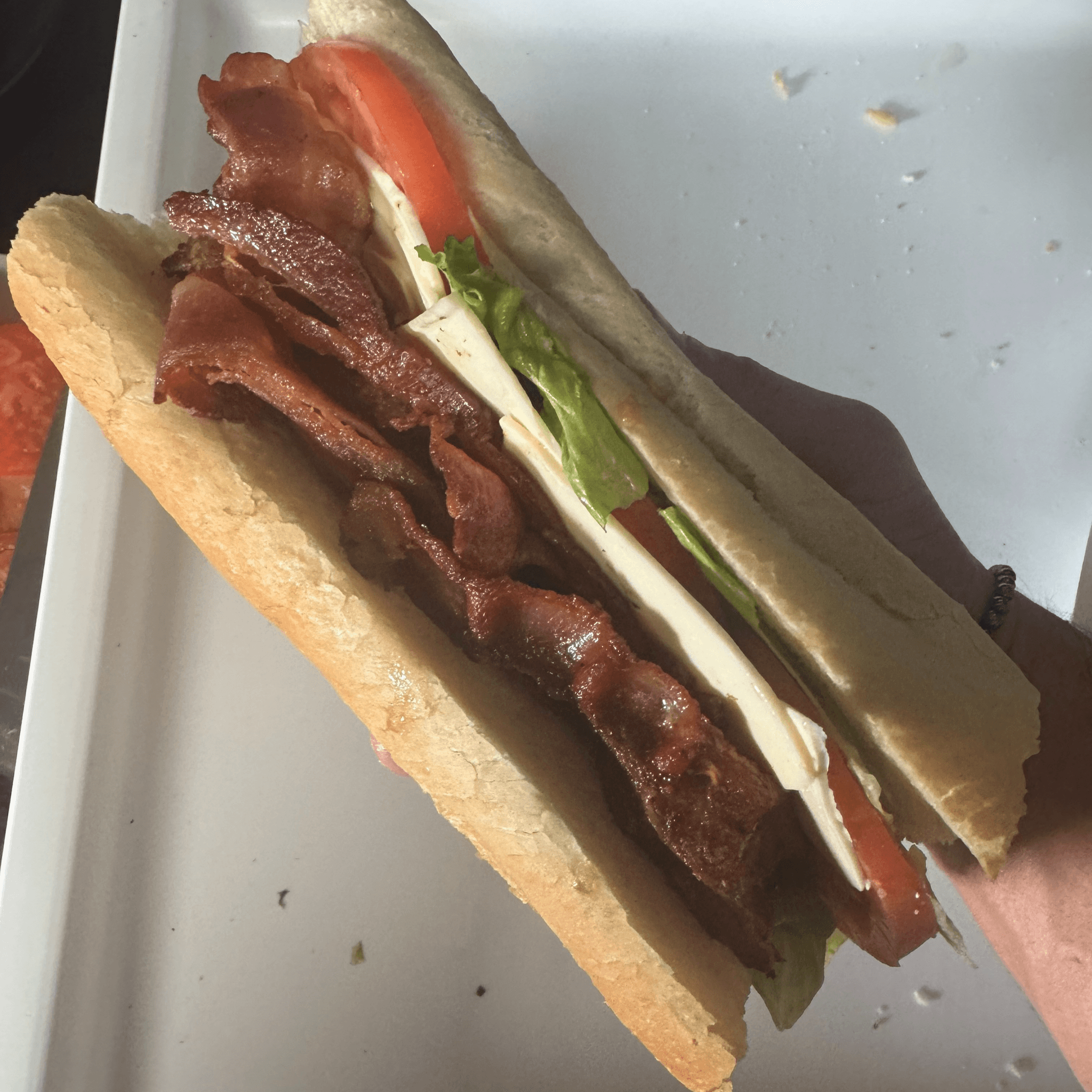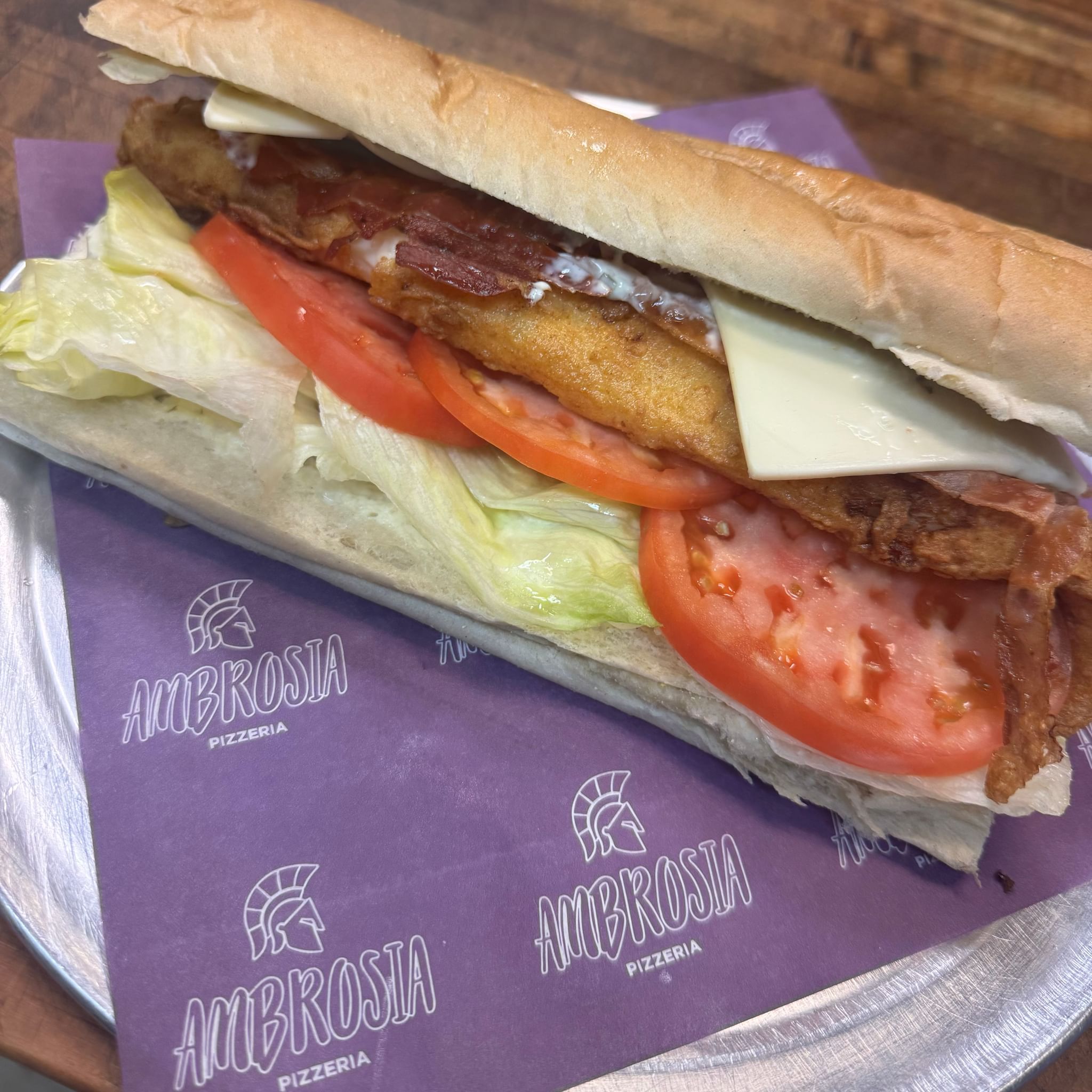 Fresh fried cod, bacon, cheese, lettuce, tomato, and tartar sauce