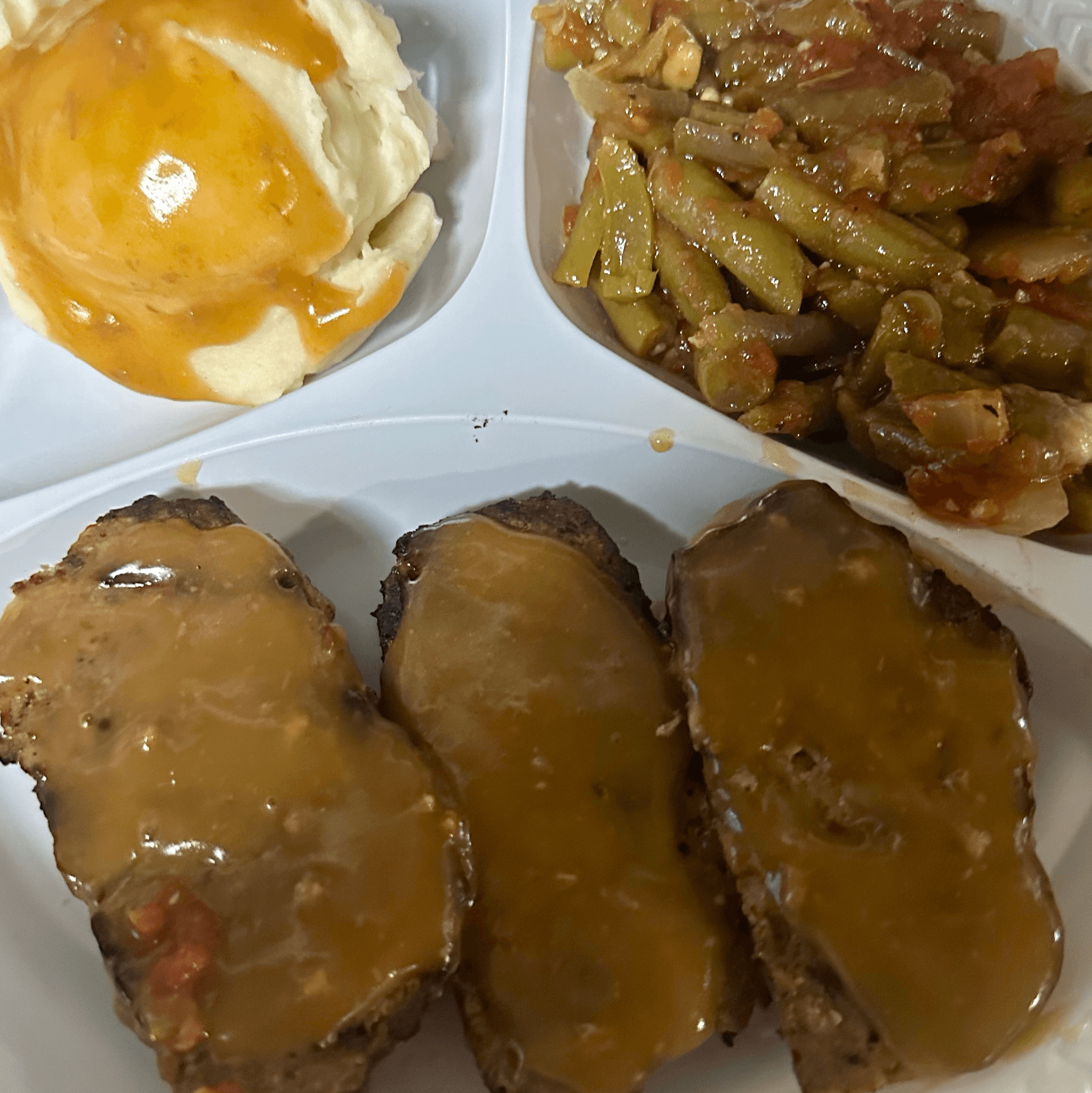 Homemade Meatloaf served with two sides