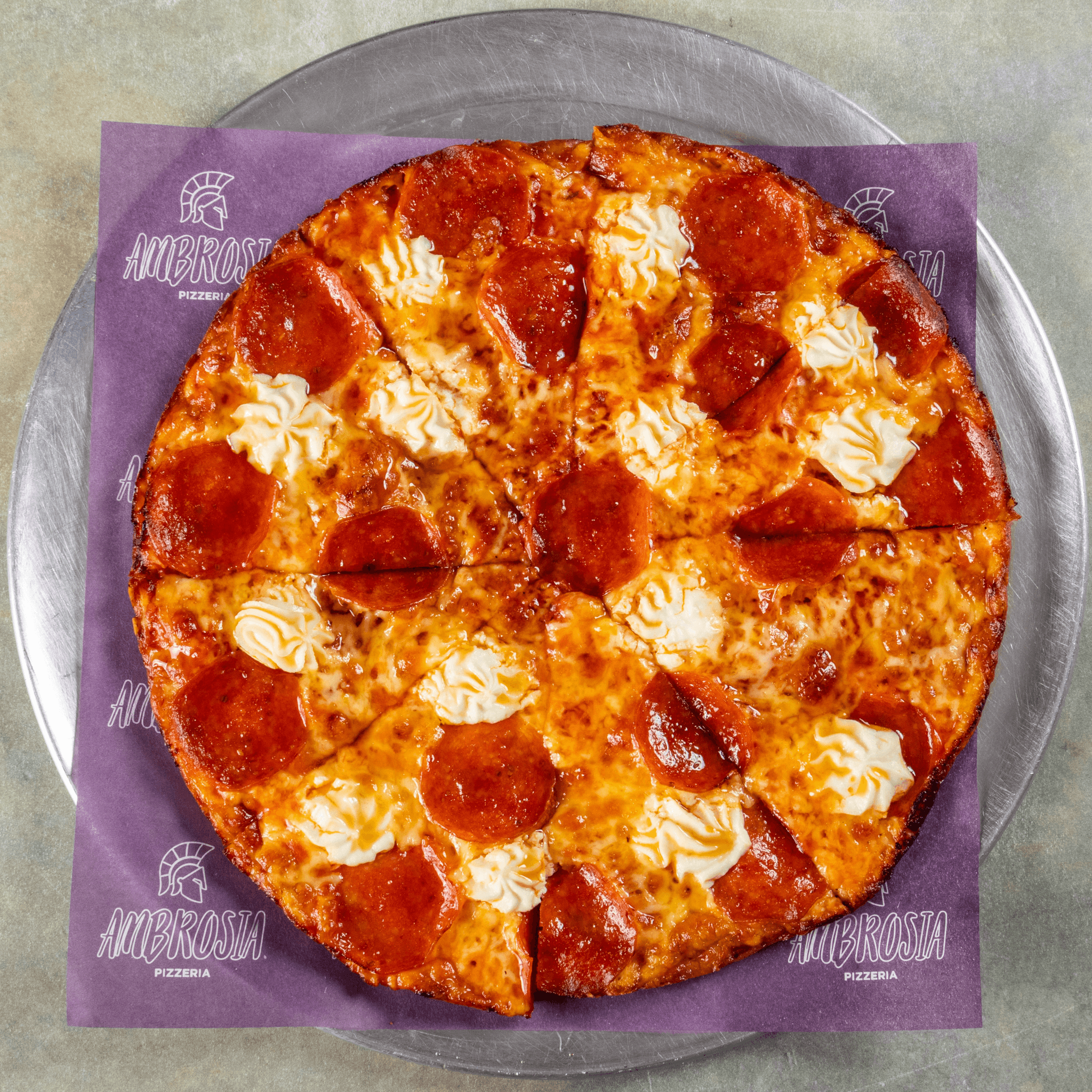 Crispy pepperoni, creamy ricotta, hot honey drizzle