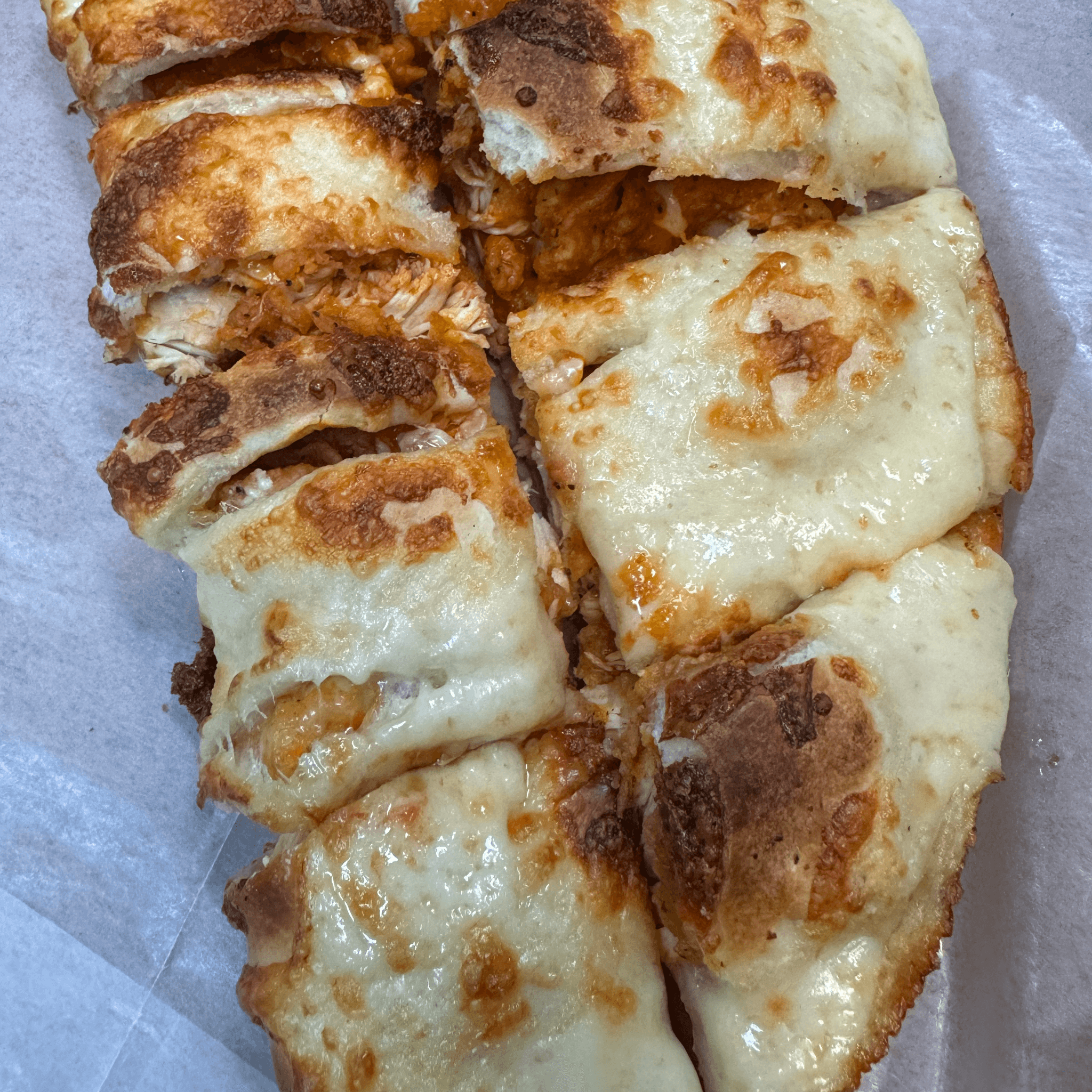 Crispy chicken cutlet tossed in buffalo sauce, layered with house pesto, melted cheese, and fresh arugula on a toasted roll.