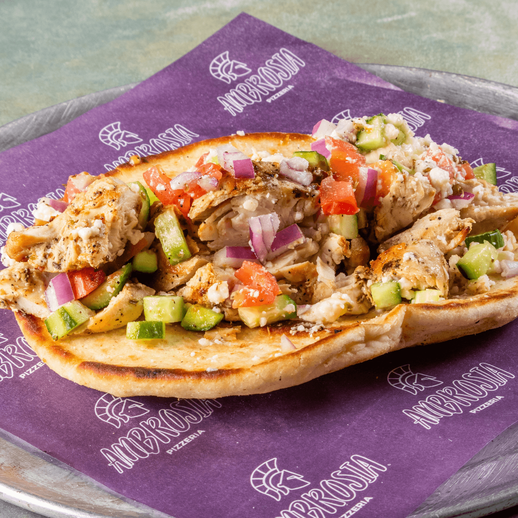 Grilled Chicken, Diced Tomato, White Onion, Feta, & House Greek Dressing